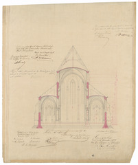 Drager: doek Techniek: pen, opgehoogd met aquarel en rode inkt Afmetingen (h x b in mm): 530 x 444 mm Schaal: 1/100