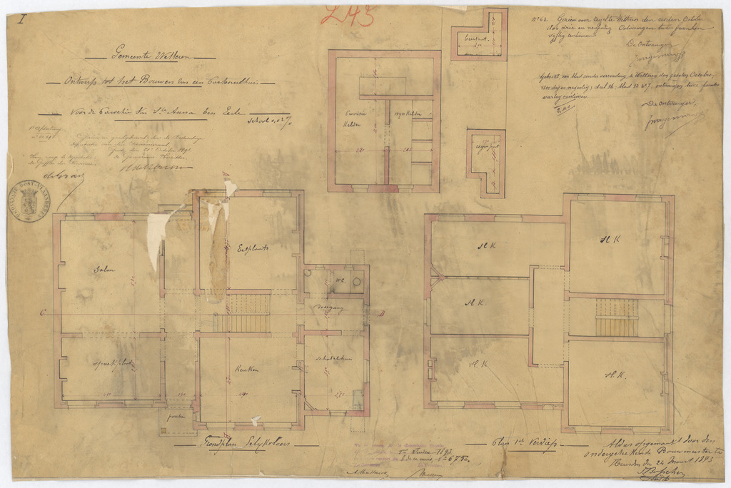 Opschrift: Gemeente Wetteren. Ontwerp tot het bouwen van een Pastoreelhuis voor de Parochie van Ste. Anna ten Eede. Omschrijving plan: plattegronden Datum KCML: 1 /07/1893 Archiefnummer: O1333
