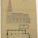 Opschrift: Provincie Oost-Vlaanderen. Parochiale kerk van Massemen. Ontwerp tot herstelling van toren en daken. Omschrijving plan: plattegrond en zuidelijke zijgevel Datum KCML: 23/06/1900 Archiefnummer: O1327