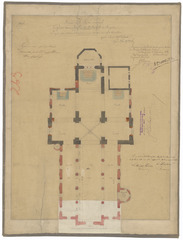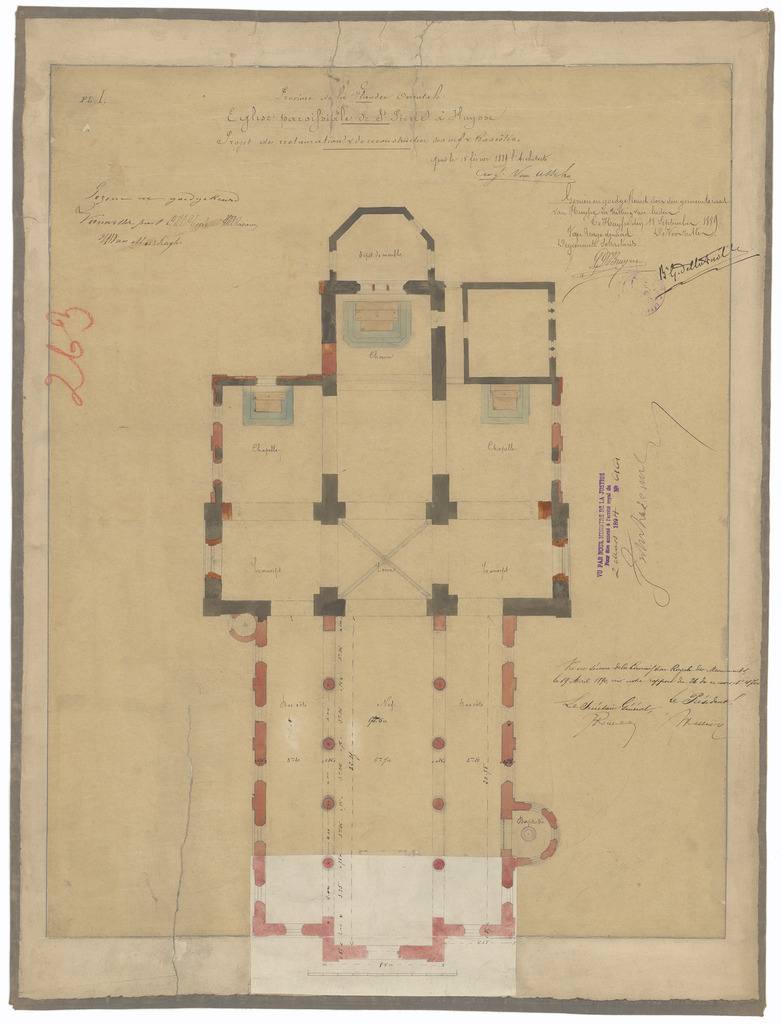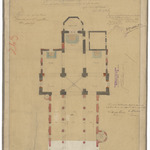 Opschrift: Province de la Flandre Orientale. Eglise paroissiale de St. Pierre à Huysse. Projet de restauration & de reconstruction des nef & bascôtés. Omschrijving plan: plattegrond niveau 0 Datum KCML: 19/04/1890 Archiefnummer: O1388