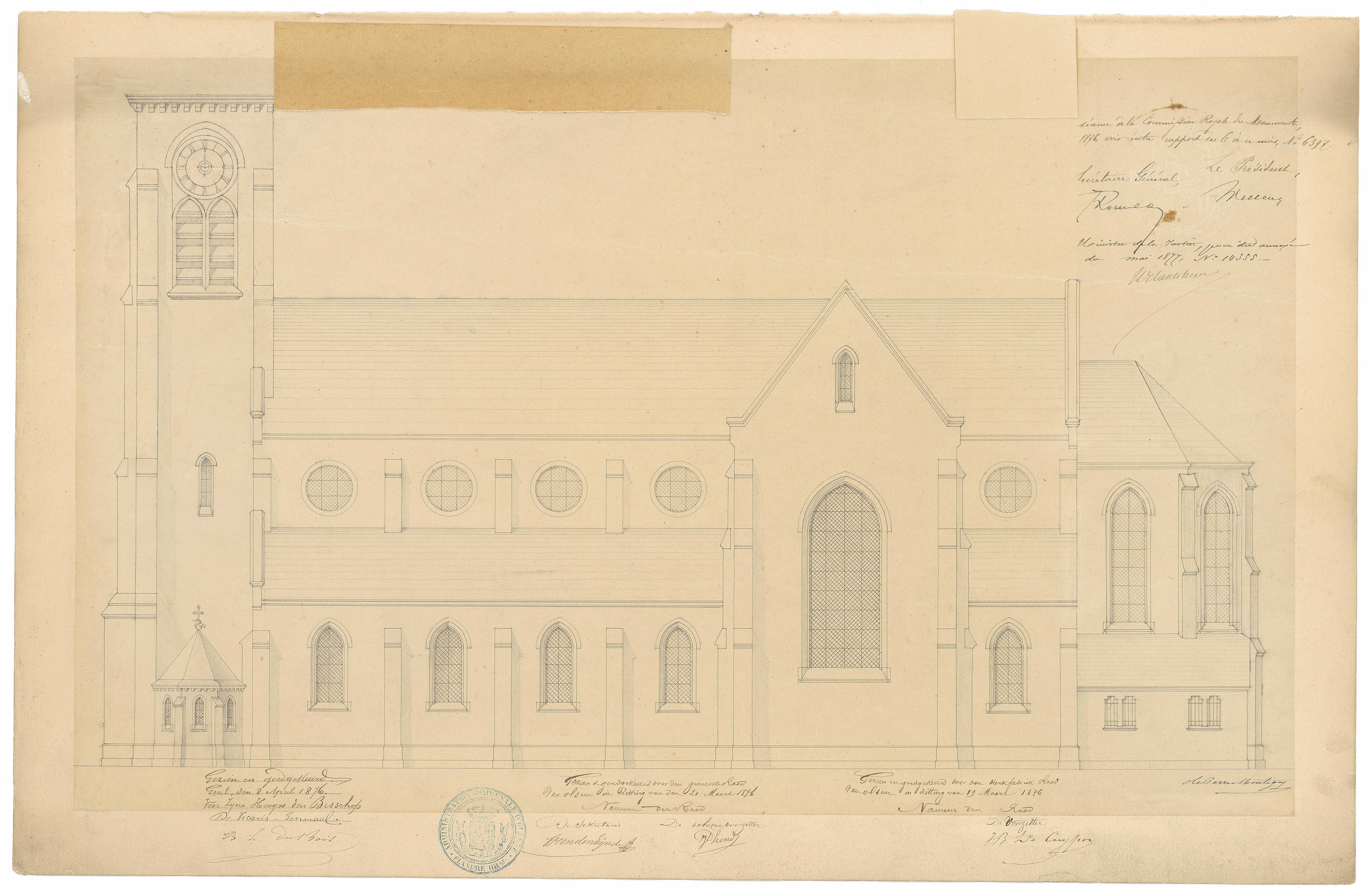 Opschrift: deze informatie wordt niet vermeld op het archiefstuk Omschrijving plan: opstand zijgevel 1 Datum KCML: 2 /09/1876 Archiefnummer: O1490_02