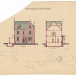 Opschrift: Gemeente Elene. Ontwerp Pastorie Omschrijving plan: opstand voorgevel en doorsnede Datum KCML: 24/04/1885 Archiefnummer: O1423