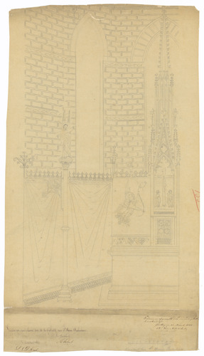 Opschrift: Noordkant Koor Ste. Maria Audenhove Omschrijving plan: ontwerp aankleding noordzijde koor Datum KCML: deze informatie wordt niet vermeld op het archiefstuk Archiefnummer: O1468