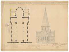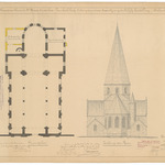 Opschrift: Provincie Oost-Vlaanderen. Gemeente Ste. Maria-Audenhove. Parochiale kerk. Ontwerp van nieuwe Sacristij en gedeeltelijke herstelling. Omschrijving plan: plattegrond en opstand achtergevel Datum KCML: 16/05/1908 Archiefnummer: O1461