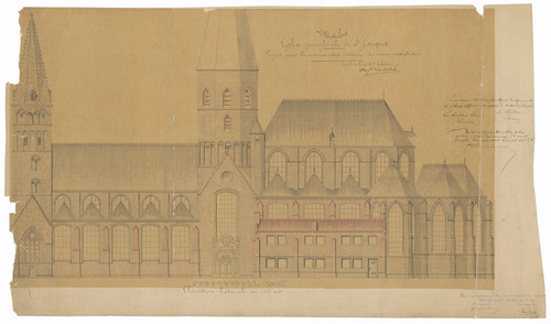 Opschrift: Ville de Gand. Eglise paroissiale de St. Jacques. Projet pour la restauration extérieure des murs, contreforts & Omschrijving plan: opstand Z-gevel Datum KCML: 09/07/1887 Archiefnummer: O1544