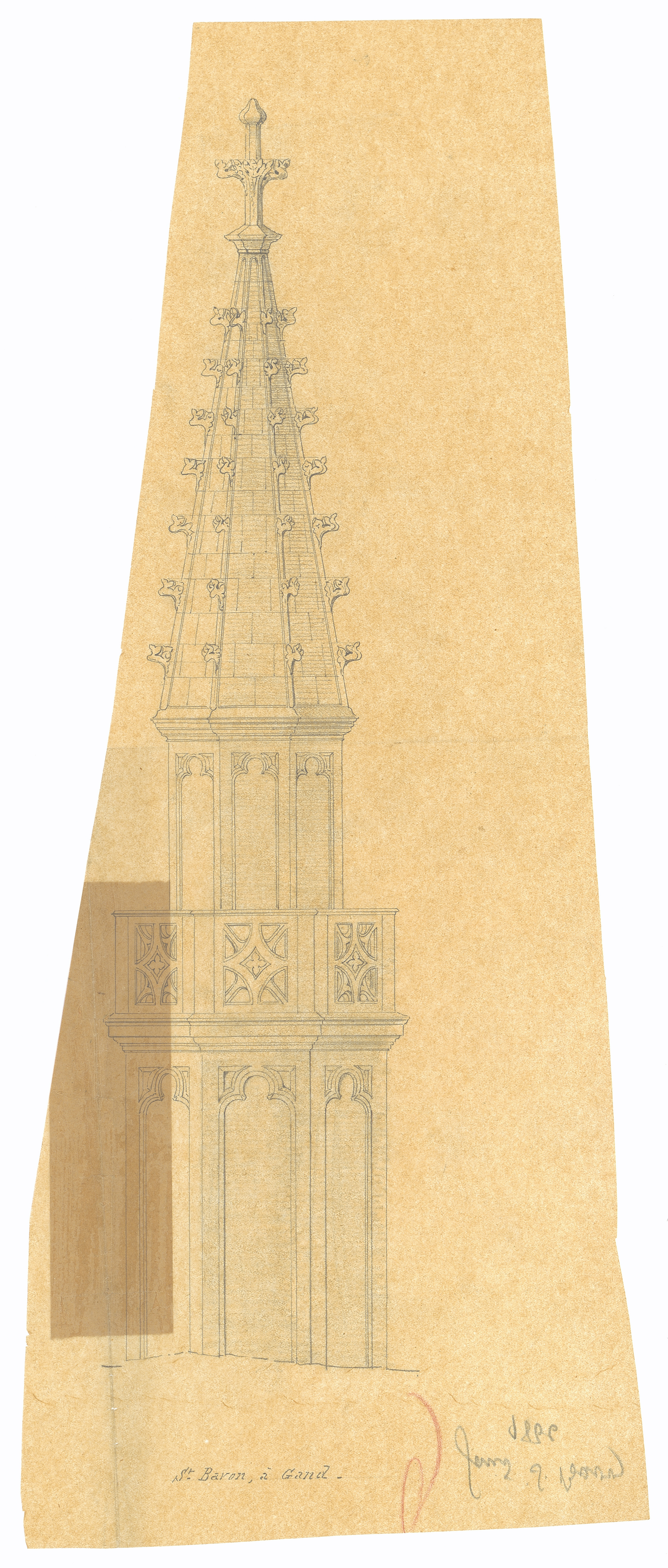 Opschrift: St. Bavon, à Gand. Omschrijving plan: opstand toren Datum KCML: deze informatie wordt niet vermeld op het archiefstuk Archiefnummer: O1534