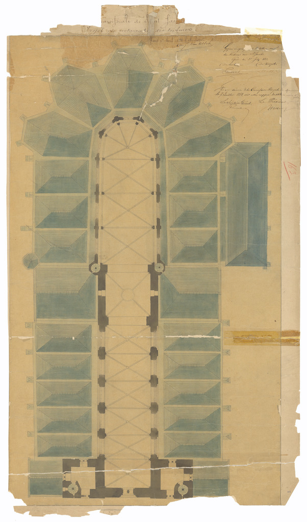 Opschrift: .. Projet de restauration des toitures. Omschrijving plan: plattegrond bedaking Datum KCML: 07/07/1883 Archiefnummer: O1542