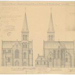 Opschrift: Provincie Oost-Vlaanderen. Stad Gent. Ontwerp tot het bouwen der kerk van den H.Vincentius à Paulo. Omschrijving plan: opstanden voor- en achtergevel Datum KCML: 15/06/1912 Archiefnummer: O1682