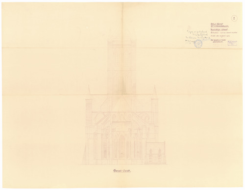 Opschrift: Stad Gent. St. Niklaaskerk. Huidige staat. Omschrijving plan: opstand O-gevel Datum KCML: deze informatie wordt niet vermeld op het archiefstuk Archiefnummer: O1624