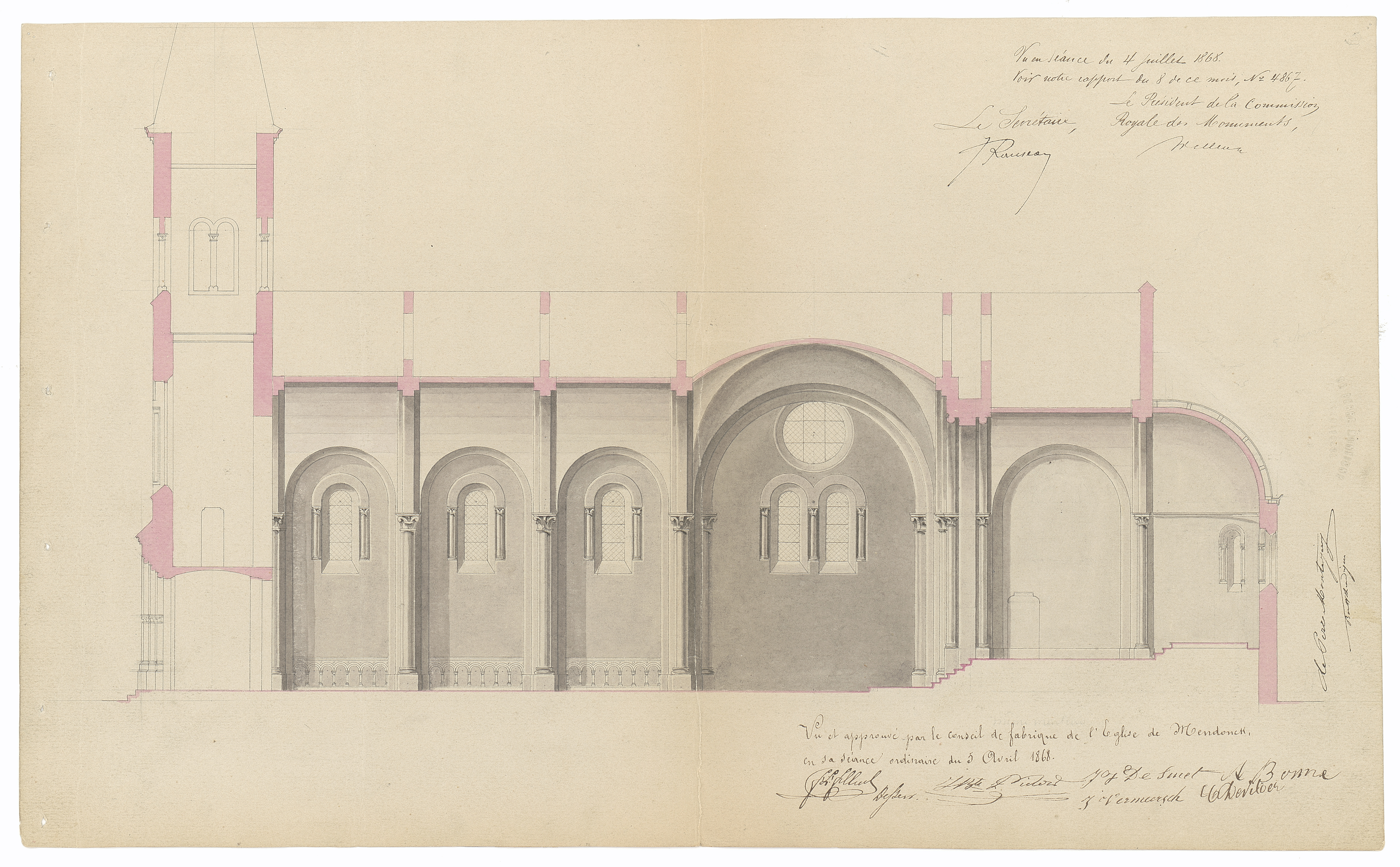 Opschrift: deze informatie wordt niet vermeld op het archiefstuk Omschrijving plan: langsdoorsnede Datum KCML: 04/07/1868 Archiefnummer: O1782