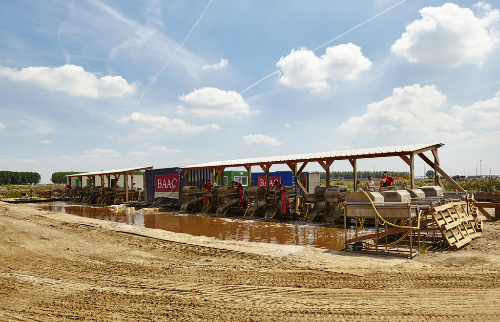 Zicht op de zeefsinstallatie van de archeologische opgraving Beveren Schoorhavenweg