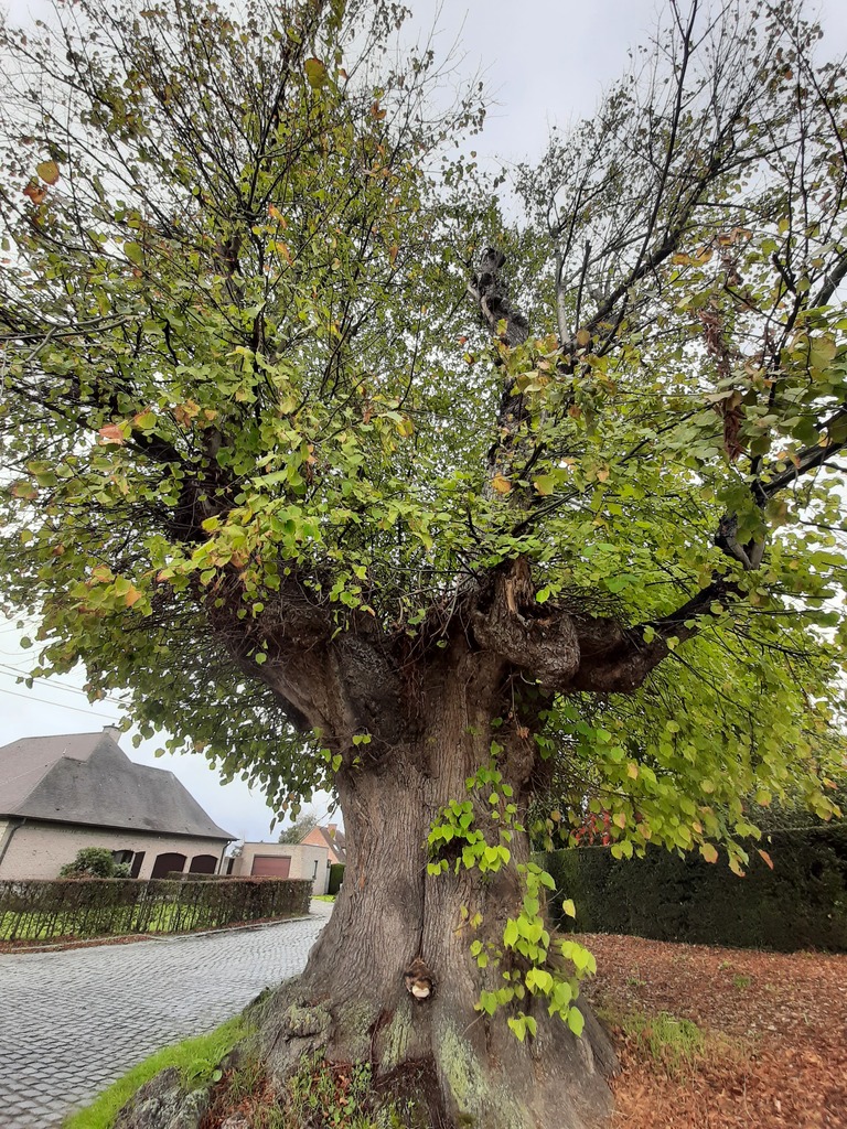 Hollandse linde op de hoek van Issegem en de Molenstraat. Naast de linde staat een pijlerkapelletje uit 1637.