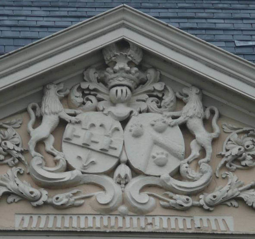 De afbeelding 'Wielsbeke Rijksweg 314 Fronton' gemaakt door Santy, Pieter wordt ter beschikking gesteld door Agentschap Onroerend Erfgoed (AOE) onder de volgende voorwaarden: Modellicentie voor gratis hergebruik, Naamsvermelding 4.0 Internationaal.