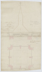 Opschrift: Eglise Notre Dame à Anvers. Tour du Sud. Plan & coupe sur la nouvelle platteforme B projetteé en remplacement de la toiture actuelle A. Omschrijving plan: dwarsdoorsnede, plattegrond toren Datum KCML: 25/11/1865 Archiefnummer: A0018 Ontwerper: Vandyck, voornaam onbekend (in opdracht van Francois Durlet)