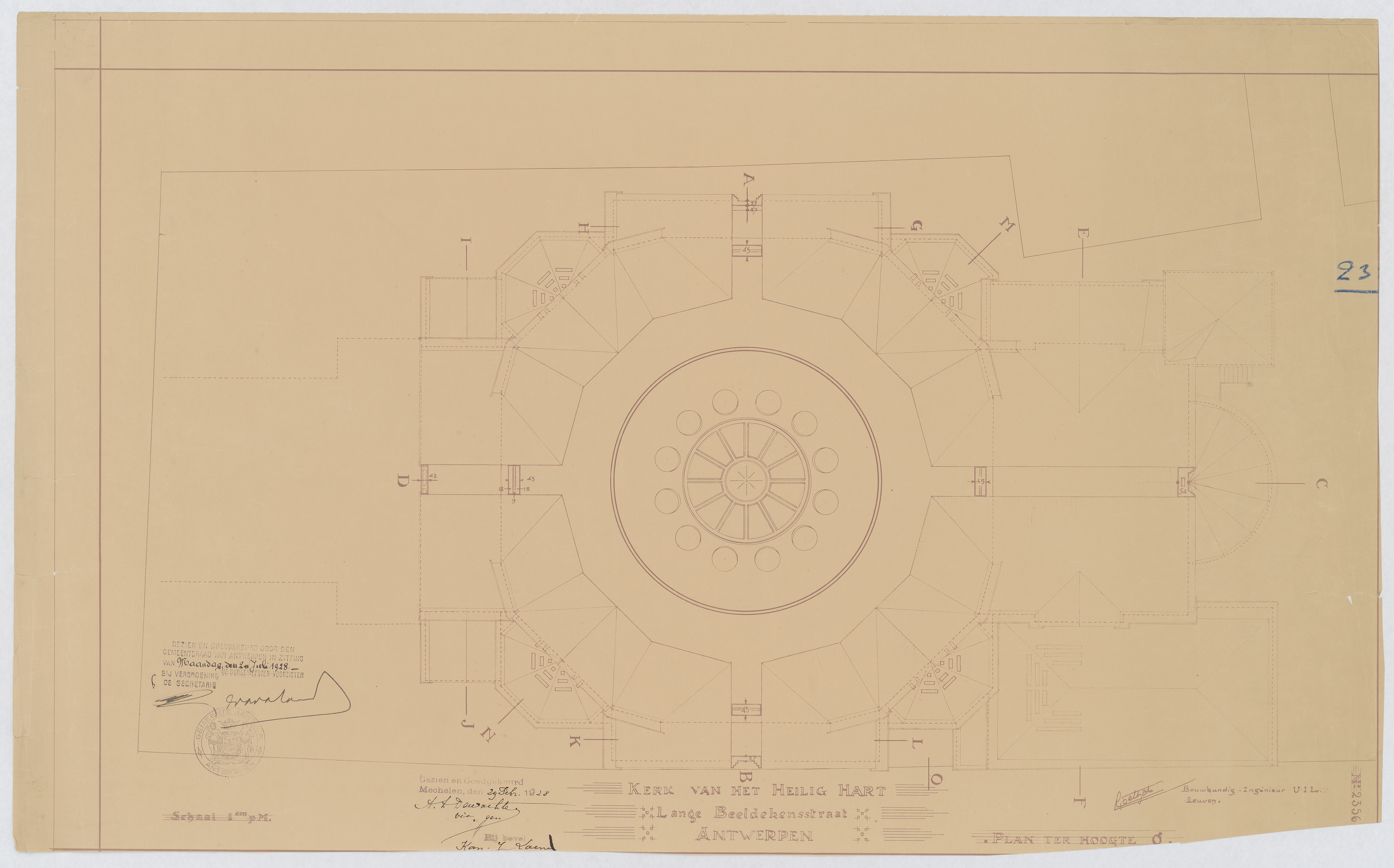Opschrift: Kerk van het Heilig Hart. Lange Beeldekensstraat Antwerpen. Plan ter hoogte g. Omschrijving plan: plattegrond niveau 2 Datum KCML: deze informatie wordt niet vermeld op het archiefstuk Archiefnummer: A0091