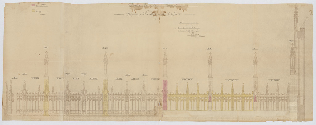 Opschrift: Eglise Notre Dame à Anvers. Restauration de la balustrade contournant le choeur. Omschrijving plan: opstand balustrade rondom koor Datum KCML: deze informatie wordt niet vermeld op het archiefstuk Archiefnummer: A0035
