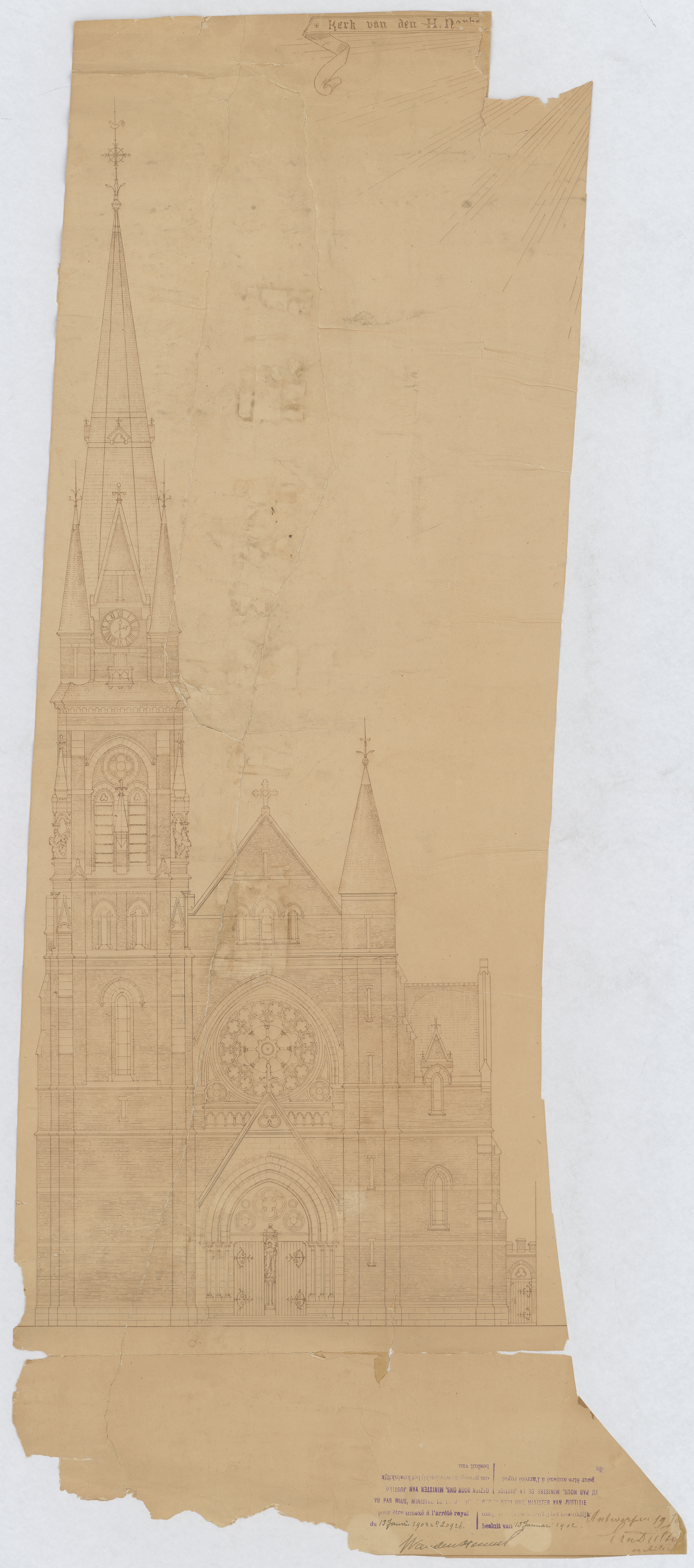 Opschrift: Kerk van den H. Norbertus. Omschrijving plan: opstand voorgevel Datum KCML: 22/09/1900 Archiefnummer: A0184