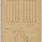 Opschrift: Sint Joris Kerk. 2 kleine ramen van het Koor (vernieuwing der bestaande) en 2 zelfde ramen voor de zijbeuken (over malkaar). Omschrijving plan: aanzicht venster, doorsnede profiel Datum KCML: 6 /01/1906 Archiefnummer: A0150