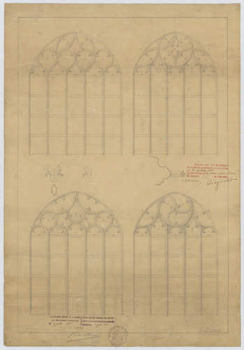 Opschrift: deze informatie wordt niet vermeld op het archiefstuk Omschrijving plan: aanzicht en doorsnede vensters Datum KCML: 7 /07/1906 Archiefnummer: A0115