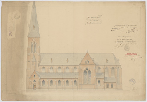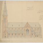 Opschrift: St. Lambertus kerk te Antwerpen. Omschrijving plan: opstand zijgevel 2 Datum KCML: 30/10/1909 Archiefnummer: A0164