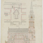 Opschrift: Nieuwe Kerk van St. Amandus op Stuyvenberg tot Antwerpen. Omschrijving plan: opstand achtergevel, situatieplan Datum KCML: 18/09/1869 Archiefnummer: A0111