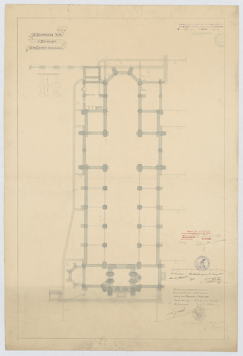 Opschrift: St. Lambertus kerk te Antwerpen. Omschrijving plan: plattegrond niveau 0 Datum KCML: 30/10/1909 Archiefnummer: A0159