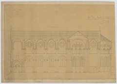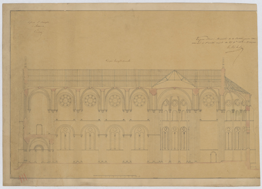 Opschrift: Eglise St. Joseph à Anvers. Coupe longitudinale. Omschrijving plan: langsdoorsnede Datum KCML: deze informatie wordt niet vermeld op het archiefstuk Archiefnummer: A0157