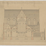 Opschrift: Nieuwe kerk der St. Antonius parochie in Antwerpen. Doorsnede volgens A-B. Omschrijving plan: dwarsdoorsnede, dwarsdoorsnede naar het koor Datum KCML: 8 /04/1905 Archiefnummer: A0123