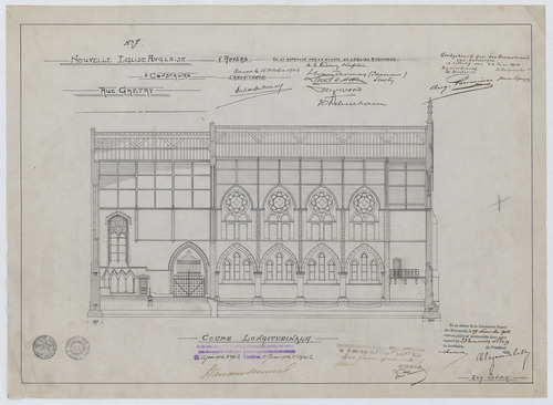 Opschrift: Nouvelle église Anglaise à construire. Rue Gretry. Anvers. Coupe longitudinale. Omschrijving plan: langsdoorsnede Datum KCML: 19/11/1904 Archiefnummer: A0209