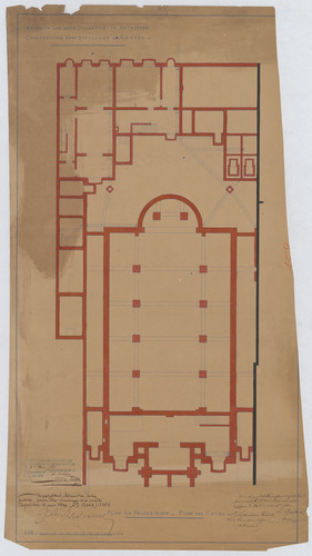 Opschrift: Aanbouw van eene Synagoge te Antwerpen. Plan der Kelderingen. Omschrijving plan: plattegrond -1 Datum KCML: 18/04/1891 Archiefnummer: A0225
