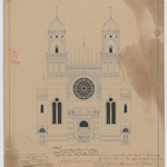 Opschrift: Aanbouw van eene Synagoge te Antwerpen.Voorname gevel. Omschrijving plan: opstand voorgevel Datum KCML: 18/04/1891 Archiefnummer: A0229