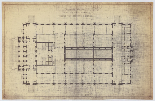 Opschrift: Stad Antwerpen. Dienst der stadsgebouwen. Museum van Schoone Kunsten. Omschrijving plan: plattegrond niveau 0 Datum KCML: deze informatie wordt niet vermeld op het archiefstuk Archiefnummer: A0325