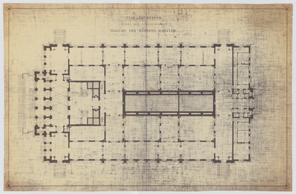 Opschrift: Stad Antwerpen. Dienst der stadsgebouwen. Museum van Schoone Kunsten. Omschrijving plan: plattegrond niveau 0 Datum KCML: deze informatie wordt niet vermeld op het archiefstuk Archiefnummer: A0325