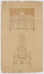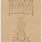 Opschrift: Nieuwe kerk van Arendonck. Omschrijving plan: dwarsdoorsnede, dwarsdoorsnede naar het koor dwarsdoorsnede naar het portaal Datum KCML: deze informatie wordt niet vermeld op het archiefstuk Archiefnummer: A0465