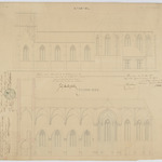 Opschrift: Kerk van Oorderen. Omschrijving plan: opstand zijgevel 1, langsdoorsnede Datum KCML: 23/05/1863 Archiefnummer: A0429