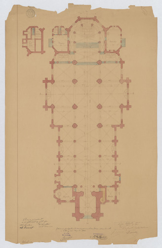 Opschrift: Nieuwe kerk van Arendonck. Omschrijving plan: plattegrond niveau 1 Datum KCML: deze informatie wordt niet vermeld op het archiefstuk Archiefnummer: A0467