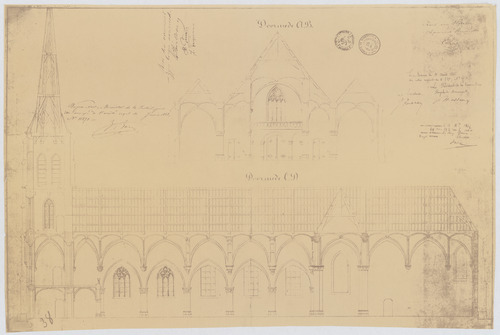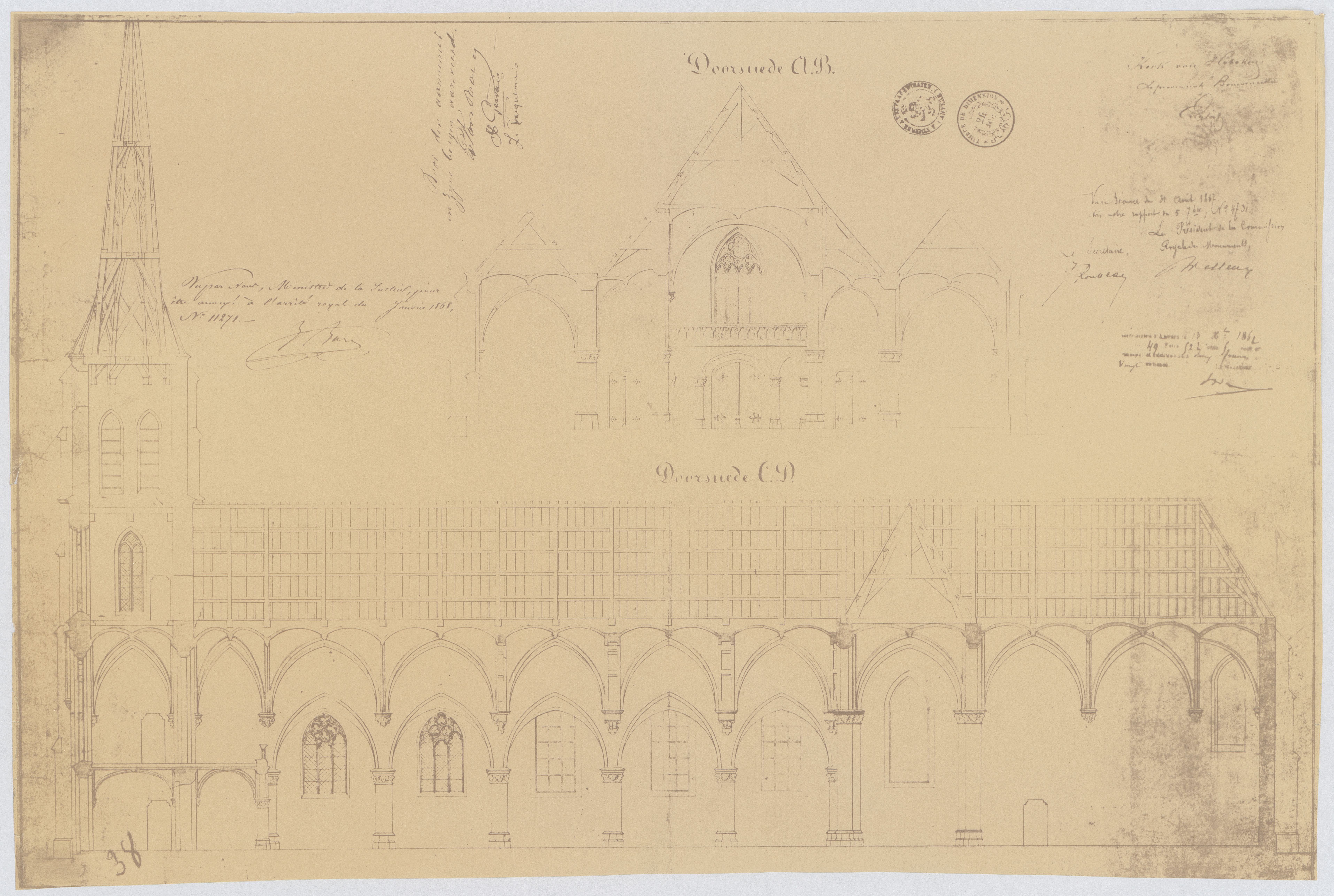Opschrift: deze informatie wordt niet vermeld op het archiefstuk Omschrijving plan: langsdoorsnede, dwarsdoorsnede Datum KCML: 31/08/1867 Archiefnummer: A0438