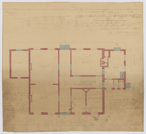 Drager: papier Techniek: pen, opgehoogd met aquarel Afmetingen (h x b in mm): 468 x 502 mm Schaal: 1/50