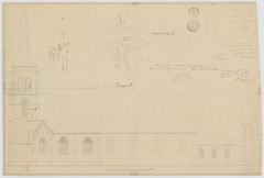 Opschrift: Algemeene Grond. Zijgevel. Omschrijving plan: opstand zijgevel 1, situatieplan Datum KCML: 31/08/1867 Archiefnummer: A0433
