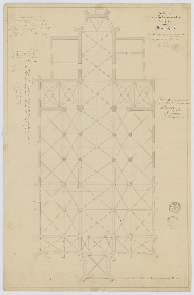 Opschrift: Ontwerp voor het vergrooten der kerk van Hoboken. Omschrijving plan: plattegrond niveau 0 Datum KCML: 31/08/1867 Archiefnummer: A0431