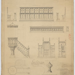 Opschrift: Meubelen voor de kerk van de Donck onder Eeckeren & Brasschaet. Omschrijving plan: voor- en zijaanzicht, doorsnede gestoelte, voor- en zijaanzicht communiebank, aanzicht en plattegrond preekstoel, aanzicht doopvont, voor- en zijaanzicht biechtstoel Datum KCML: 29/03/1890 Archiefnummer: A0593