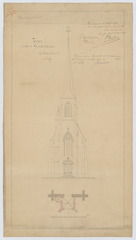 Opschrift: Tour de l'église de Brasschaetsche heide. Omschrijving plan: opstand voorgevel, plattegrond toren Datum KCML: 1 /08/1871 Archiefnummer: A0595