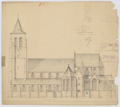 Opschrift: Ontwerp voor herstellingswerken aan de kerk van Brecht. Omschrijving plan: opstand zijgevel 1 Datum KCML: 13/10/1894 Archiefnummer: A0599