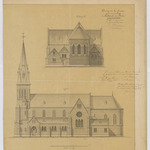 Opschrift: Ontwerp voor het bouwen eener nieuwe Kerk te Heikant onder Berlaer. Omschrijving plan: opstand achtergevel, opstand zijgevel Datum KCML: 29/09/1883 Archiefnummer: A0543