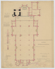Opschrift: Ontwerp tot het bouwen eener nieuwe Parochiekerk te Beerse met behoud van den bestaanden Toren. Omschrijving plan: plattegrond niveau 0, plattegrond met aanduiding meubilair Datum KCML: 29/12/1906 Archiefnummer: A0525