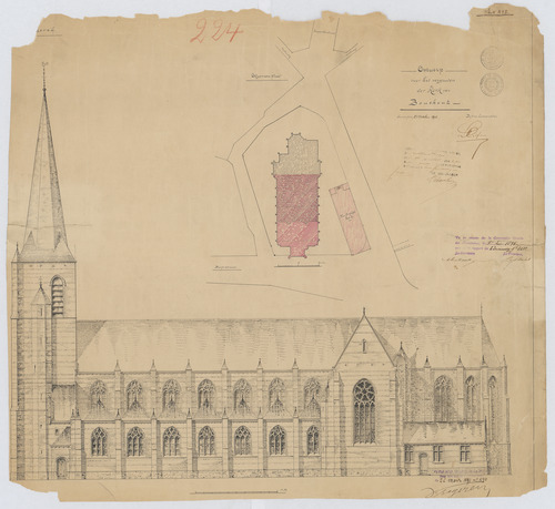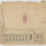 Opschrift: Ontwerp voor het vergrooten der Kerk van Bouchout. Omschrijving plan: opstand zijgevel 1, situatieplan Datum KCML: 1 /06/1895 Archiefnummer: A0553