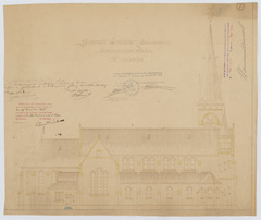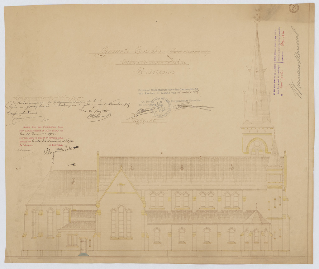 Opschrift: Gemeente Esschen (provincie Antwerpen). Ontwerp der nieuwe kerk St.-Antonius. Omschrijving plan: opstand zijgevel 2 Datum KCML: 16/12/1905 Archiefnummer: A0620