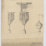 Opschrift: Kerk van Overbroek. Ontwerp der meubleering. Omschrijving plan: plattegrond, voor- en zijaanzicht preekstoel, plattegrond en vooraanzicht doopvont Datum KCML: 29/04/1893 Archiefnummer: A0606