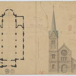 Opschrift: Ontwerp voor het bouwen eener kerk te Wildert onder Esschen. Omschrijving plan: opstand voorgevel, situatieplan, plattegrond niveau 0 Datum KCML: 30/08/1879 Archiefnummer: A0626