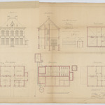 Drager: papier Techniek: pen, opgehoogd met aquarel, aangehechte kalk met potloodschets van voorgevel Afmetingen (h x b in mm): 618 x 495 mm Schaal: 1/100
